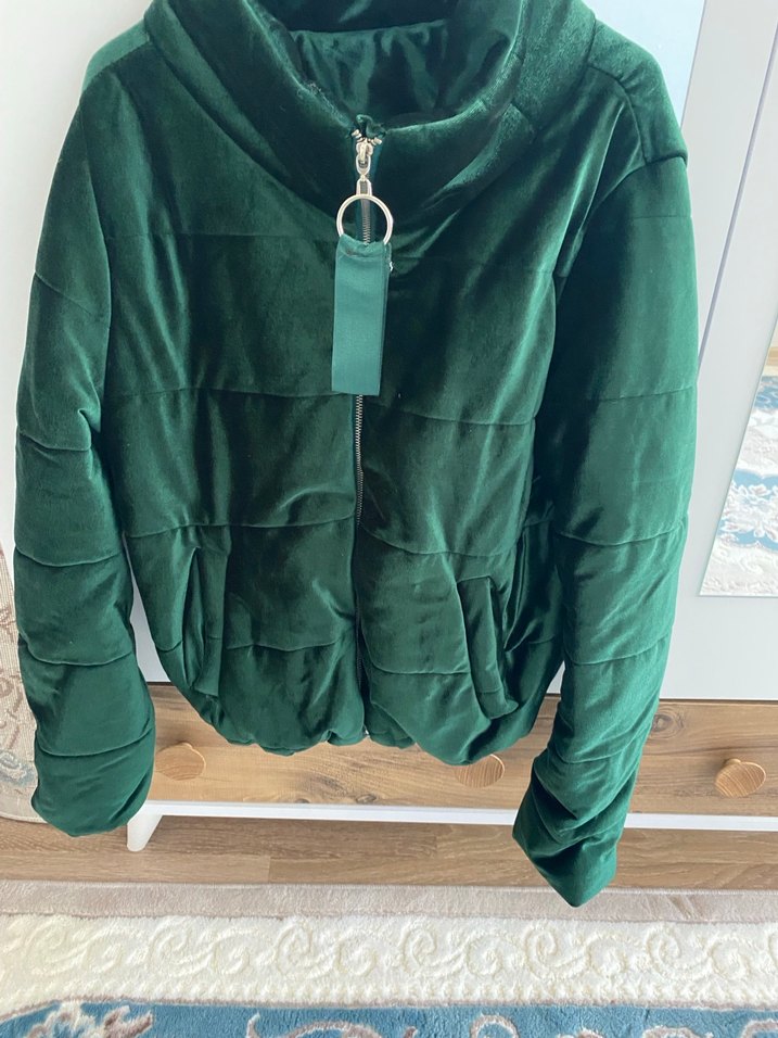 Parlak yeşil renkte, yüksek yakalı ve uzun kollu kadın midi mont. Fermuarlı, vücuda oturan kesimi ve yumuşak sıcak kumaşıyla rahat ve şık görünüme uygundur. Sadece iç kısmında yırtıklar mevcut tadilat gerekli öylede kullanılabilir . Dıştan hiç bir problemi yok 36 beden