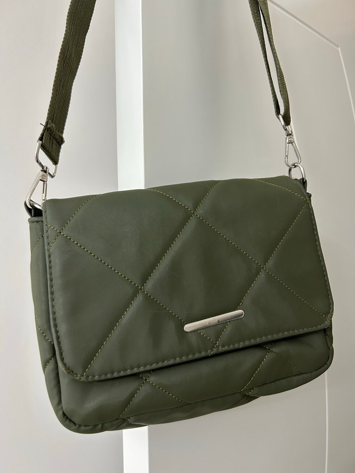Kapitone görünümlü, dikişli ve kemerli detaylı, ayarlanabilir askılı kadın omuz çantasıdır.