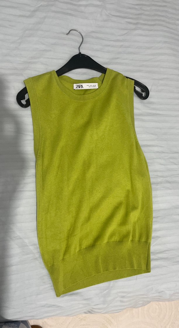 Yeşil Kadın Örme Kolsuz Süveter