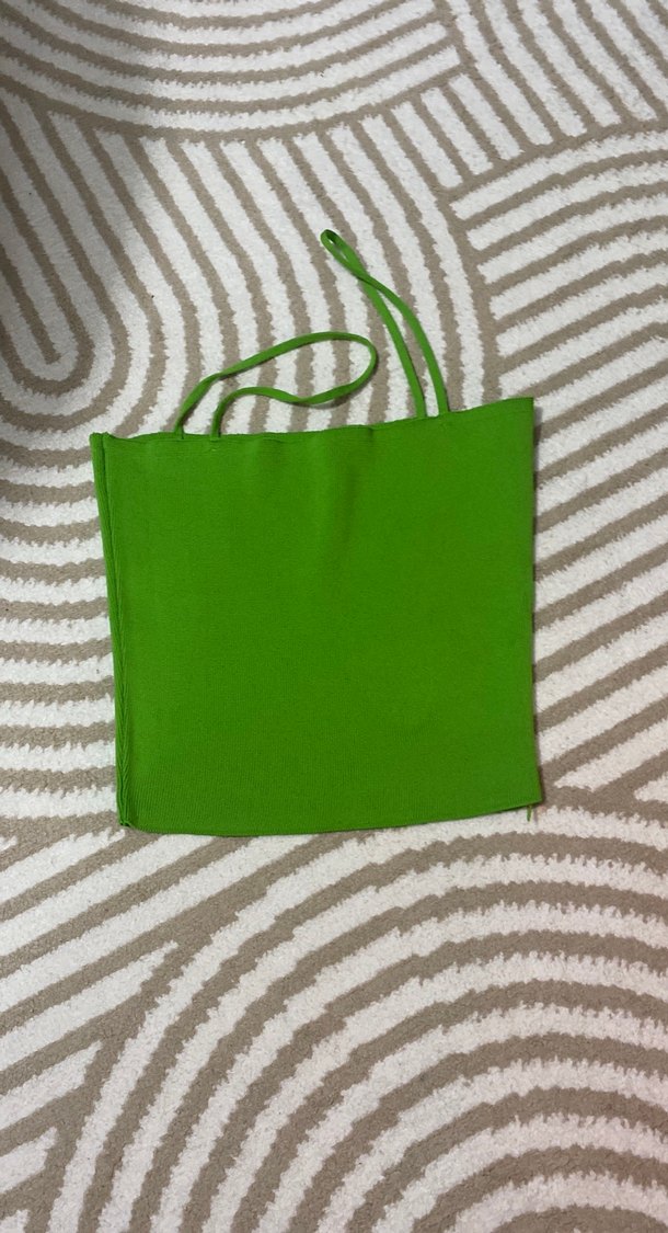 Yeşil renkte, sentetik kumaştan yapılmış, desen içermeyen ve minimalist tarzda ince askılı plaj çantası, günlük kullanım için rahat ve şık bir tercih.