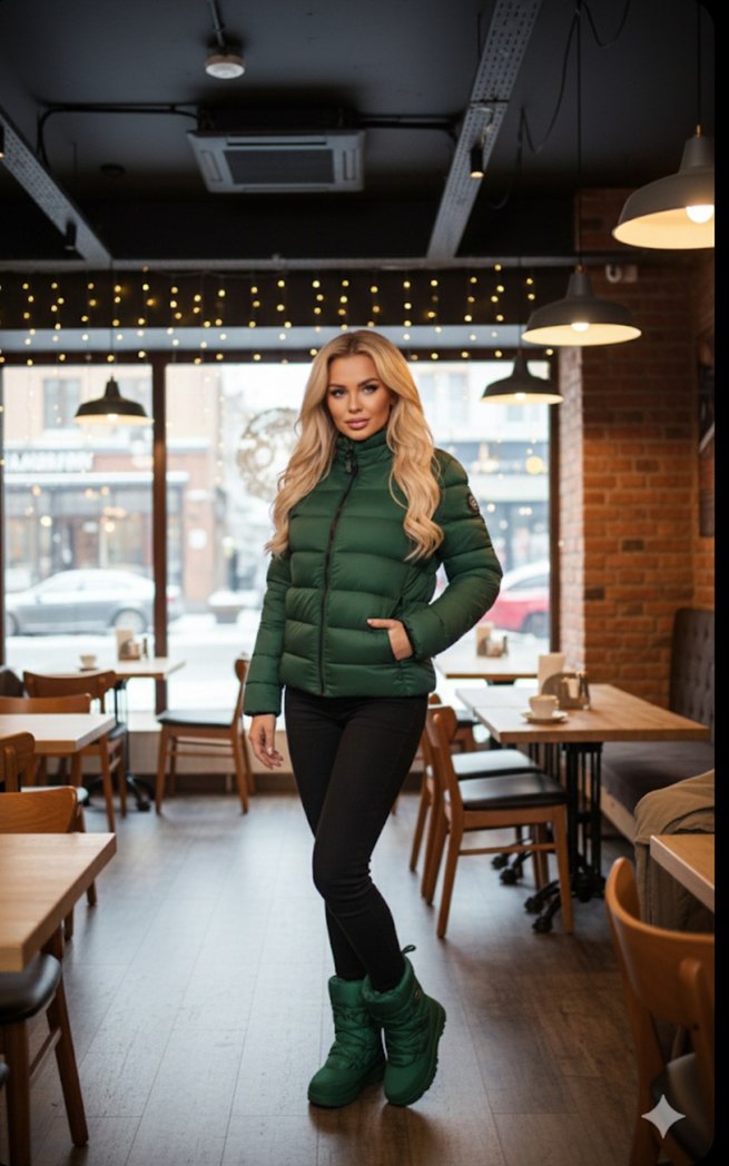 Yeşil Kadın Puff Mont, Kısa ve Dar Kesim