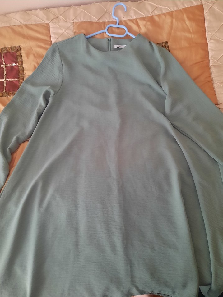 yeşil renkte, uzun kollu ve yuvarlak yaka kadın tunik. Salaş kesimi ve drapeli tasarımıyla rahat bir kullanım sunar. Günlük kullanıma uygundur.