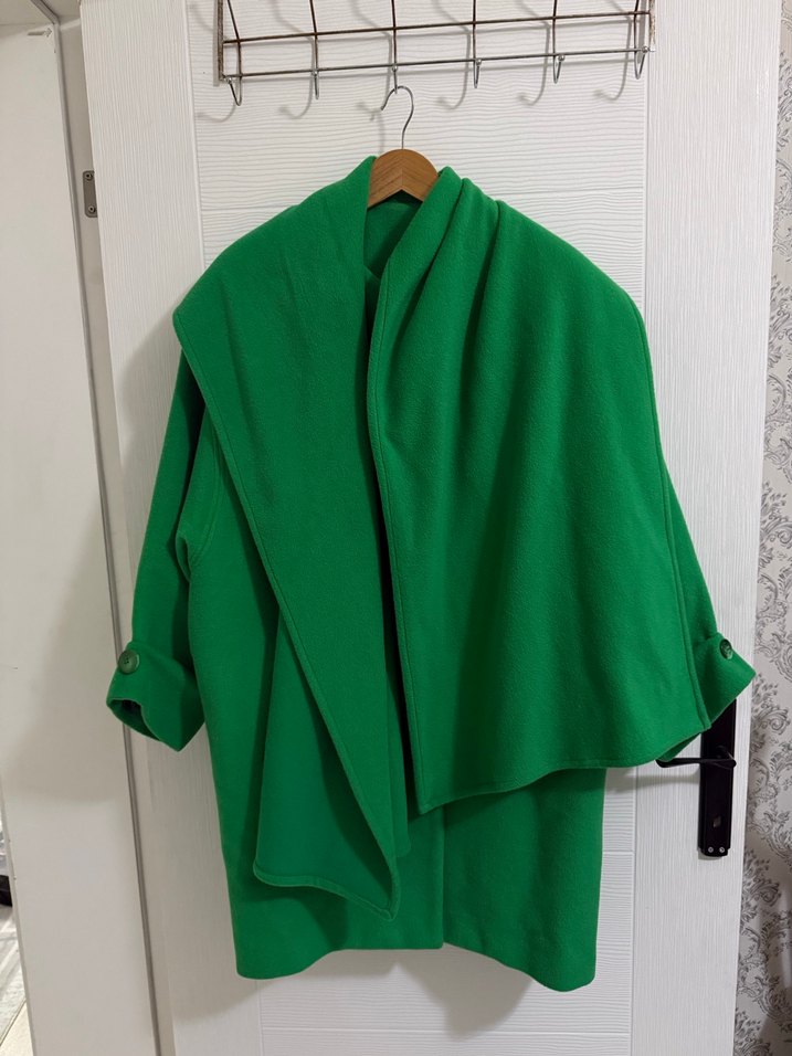 Yeşil Kadın Salaş Uzun Kaban Kendinden Atkılı İtalyan üretim