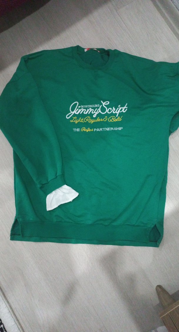 Yeşil renkli, baskılı ve fermuarlı detaylara sahip, yuvarlak yaka ve uzun kollu bol kesim sweatshirt. Yumuşak ve sıcak kumaştan, günlük rahat kullanım için uygundur.