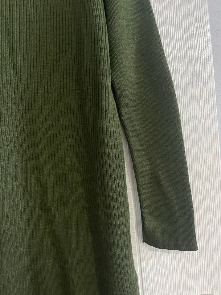 Yeşil renkte, boğazlı ve uzun kollu, triko dokulu kadın kazak. Orta uzunlukta ve vücuda oturan kesimle günlük kullanıma uygundur. Rahat sentetik kumaştan üretilmiştir.