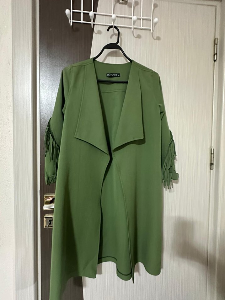 Yeşil renkli, , uzun kollu püsküllü tasarıma sahiptir.