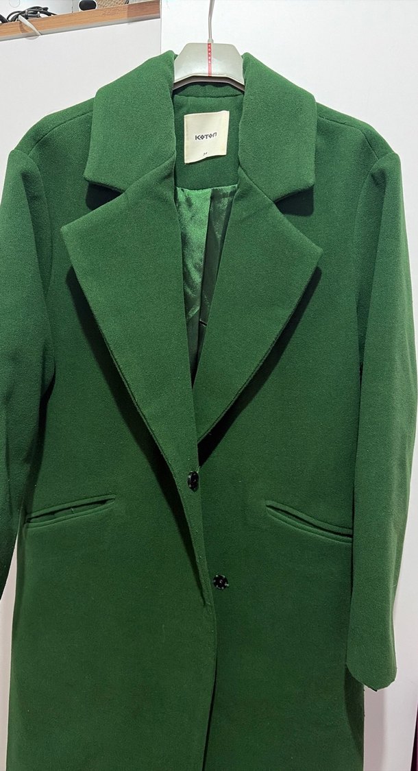Bir kusuru yoktur . 34 beden 36 bedene s bedene rahat olur yeşil renkte, yumuşak ve sıcak dokulu uzun kadın kaban. Notlu yaka ve uzun kolludur, ofis ve günlük kullanıma uygundur.