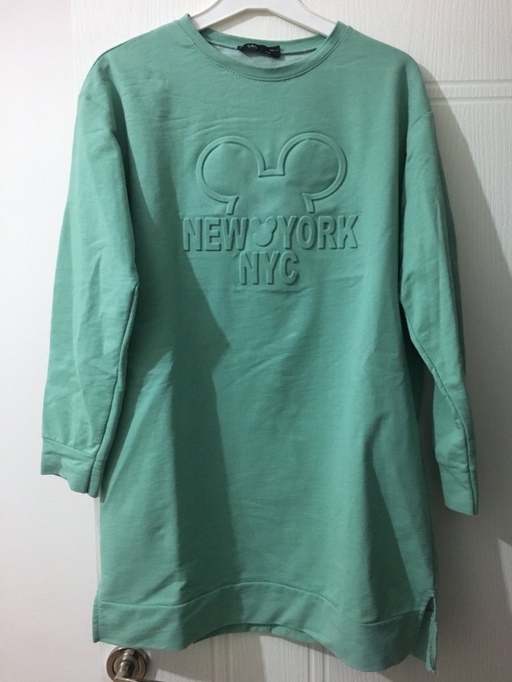 Uzun kollu, yuvarlak yaka, yeşil renkli, baskılı "NEW YORK NYC" detaylı bol kesim sweatshirt. Yumuşak kumaştan, rahat sokak stili. Günlük kullanıma uygun.