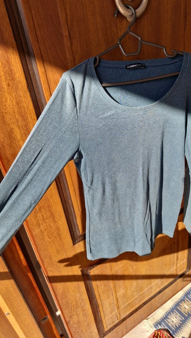Yeşik renkte,yuvarlak yakalı ve uzun kollu kadın tişörtü. Rahat ve salaş kesimiyle günlük kullanıma uygun sade bir tasarıma sahiptir.