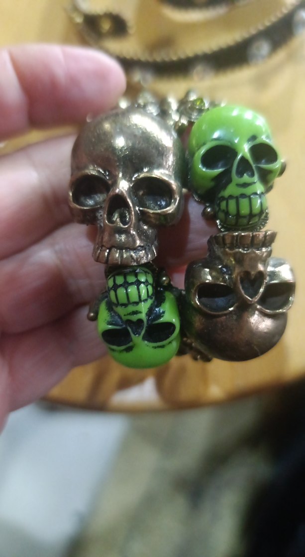 Koyu yeşil ve bronz renkli kafatası tasarımlı blezik grunge punk tarzında cesur ve dikkat çekici detaylara sahip. zara #mango #çiçeklielbise #zara #mango #ylondon #tüzün #berchka #kumas hırka #ceket #kumaşceket etek #vintage #şık #kotceket #stiletto #bot #çizme #gömlek #tasarım #zara #mango #ipekyol #channel #abiye #trençkot #pardesü #kap #beyaz #siyah #kırmızı #mor #derimont #deri #montkoton #pologarage #ceket #antika #fatoşbebek #büyükbeden #abiye #etek #vintage #şık #kotceket #stiletto #bot #çizme #fatoşbebek #zelişbebek #barbie #antikabebek #fatoş #bilezik #bileklik