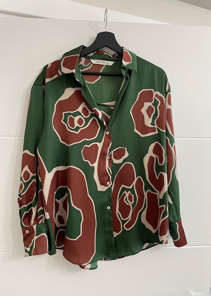 YEŞİL KAHVE DESENLİ SATEN GÖMLEK