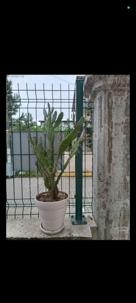 Beyaz saksıda yeşil kaktüs bitkisi, ev dekorasyonu için uygundur. Çoklu uzun gövdelere sahiptir ve mekâna doğal bir hava katar.