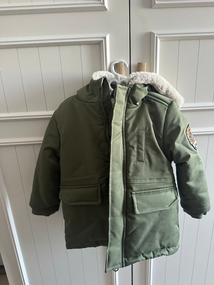 Yeşil kamuflaj desenli, yumuşak fleece kumaştan yapılmış, kürk detaylı kapüşonlu ve kesimi dar olan erkek çocuk montu. 12-18 ay alındı fakat hiç giydirmek nasip olmadı