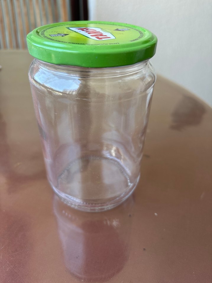 Şeffaf cam kavanoz, açık yeşil kapaklı, çeşitli eşyaları güvenle saklamak için uygun. 10 adet fiyatıdır makinada yıkanmış etiketsiz durumdadır