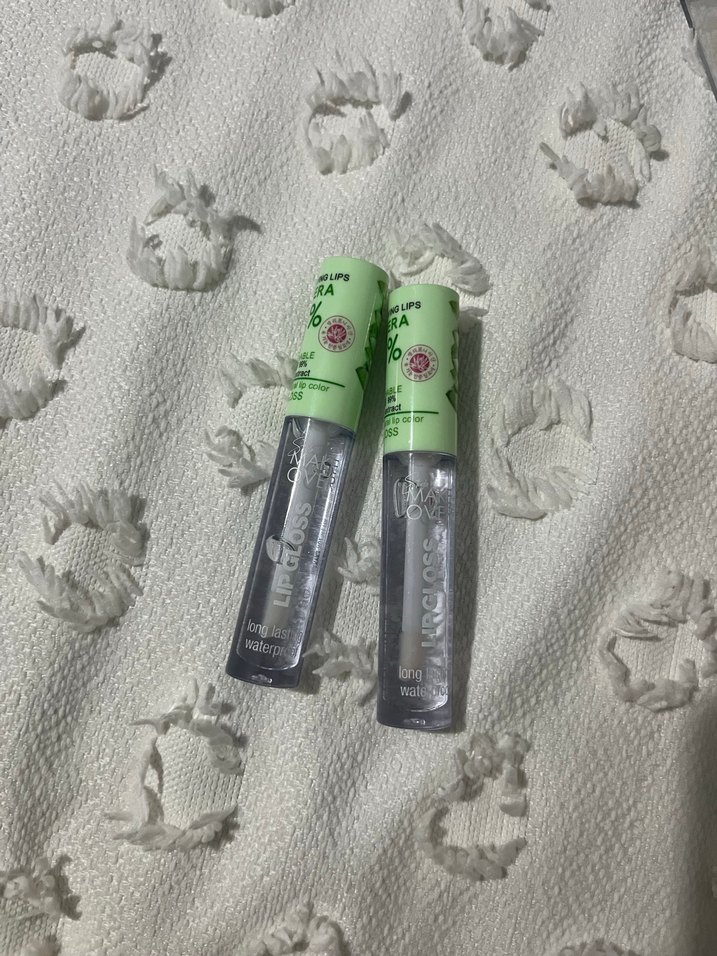 Yeşil kapaklı, gri tonlarda iki adet uzun süre kalıcı, suya dayanıklı dudak parlatıcısı. 2 adet almıştım çok güzel aloeveralı dudağı hem parlatıp hem nemlendiriyor biri daha sıfır 1 adet satıştadır.marka temsili