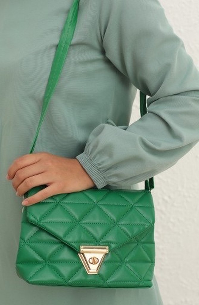 Yeşil renkte, kapitone desenli ve kemerli tasarıma sahip kadın omuz çantasıdır. Sentetik kumaştan üretilmiş, günlük ve sokak stili için uygundur. 3 ADET FİYATIDIR