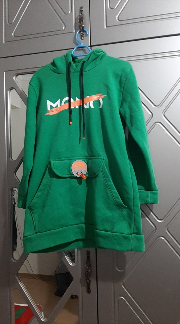 Yeşil renkte, uzun kollu ve yuvarlak yakalı bol kesim sweatshirt. Renkli baskılı, düğmeli detaylı, yumuşak ve sıcak kumaştan üretilmiştir.