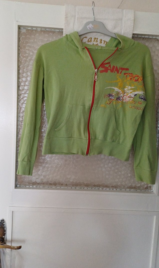 Bu yeşil kapüşonlu kız ceketi, fermuarlı ve parlak baskılı tasarıma sahip, yumuşak ve sıcak kumaştan yapılmıştır. Trendy casual tarz için uygundur.