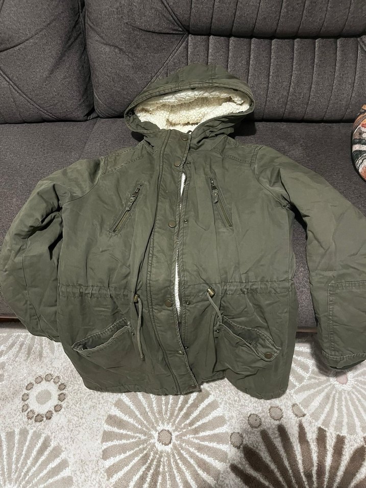 Yeşil renkte, kapüşonlu ve içi yumuşak kürklü kadın mont. Rahat kesimi ve uzun kollarıyla sokak stiline uygun, orta boy dış giyim ürünü. Hiç kullanmadığım için satıyorum.