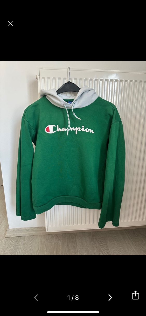 Yeşil renkli, kapüşonlu, uzun kollu ve bol kesim kadın sweatshirt. Yumuşak ve sıcak kumaştan, baskılı logolu, günlük sokak stili için uygun. Orjinal champion marka