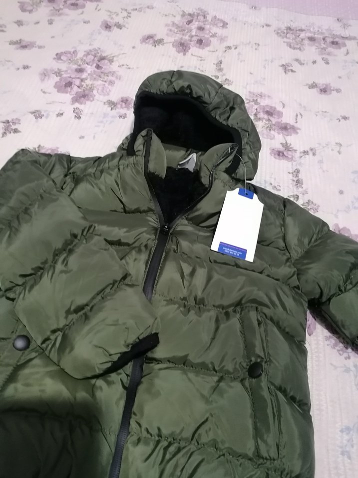 Bu koyu yeşil kadın kışlık ceket, uzun kollu ve çıtçıtlı, geniş kesim ve normal uzunlukta midi boydadır. Sokak stilini rahatlıkla birleştirir.