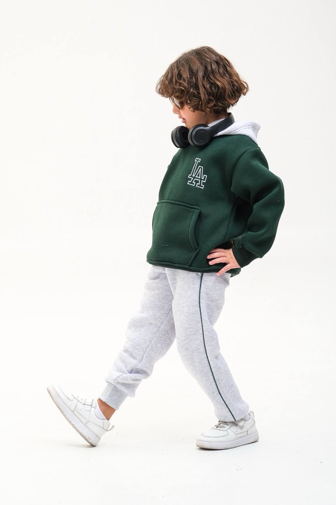 Yeşil Kapüşonlu LA Baskılı takım unisex