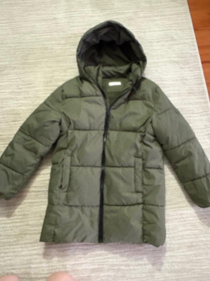Yeşil renkte, kapüşonlu ve fermuarlı kız çocuk kışlık mont. İçi polar .defosu yok temizdir