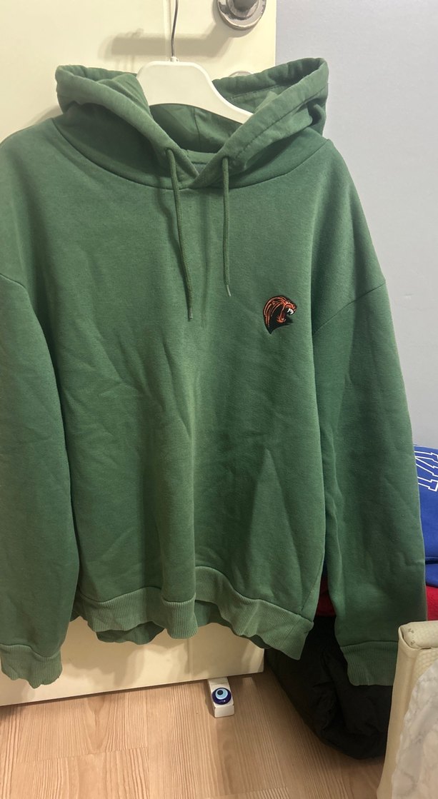 Yeşil kapüşonlu sweatshirt, uzun kollu ve salaş kesimdir. Baskılı detaylarla sportif ve rahat bir stil sunar. Yumuşak ve sıcak kumaştan üretilmiştir. ♀️
