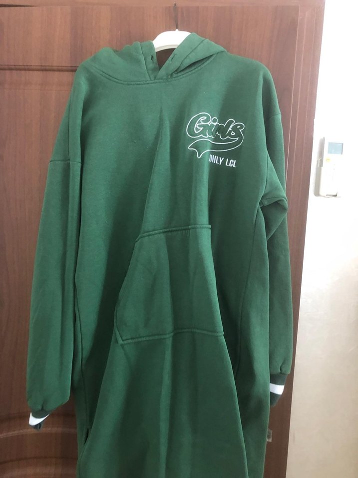 Yeşil Kapüşonlu Uzun Kollu Sweatshirt