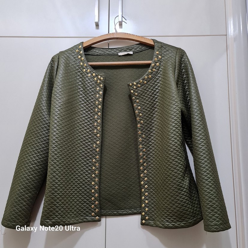 uzun kollu, yeşil ceket. Parlak yüzeyli, oturan kesim ve kesik yaka detayıyla günlük şıklık sunar. ✨M ve L bedende çok rahat giyebilir.