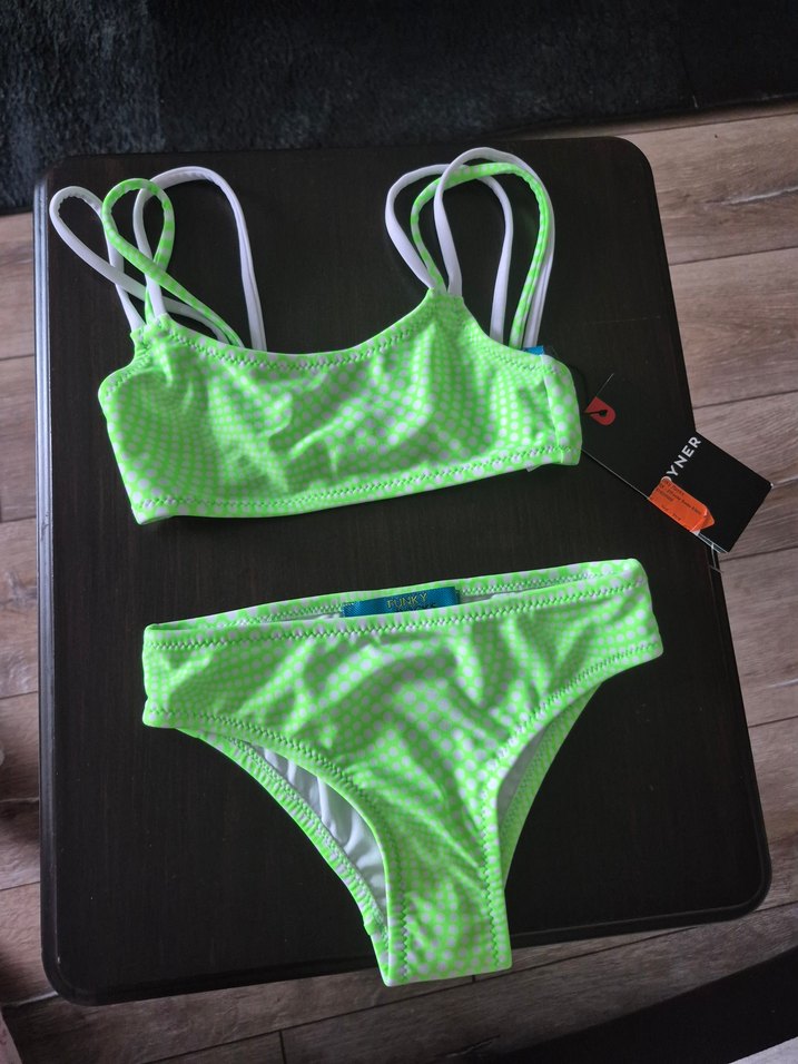 Yeşil kareli desenli, askılı bikini takımıdır. Renkli ve karşı kültür tarzıyla plaj için uygundur. ️