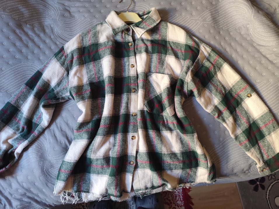 Herhangi bir kusuru yoktur, dikkatli kullanılmıştır. Marka temsilidir. teklifler için mesaj atabilirsiniz❤️ Yeşil kareli, düğmeli, uzun kollu, yakalı ve bol kesim pamuklu kadın gömleği. Rahat ve günlük sokak stili için uygundur. Ön cep detayı bulunur.