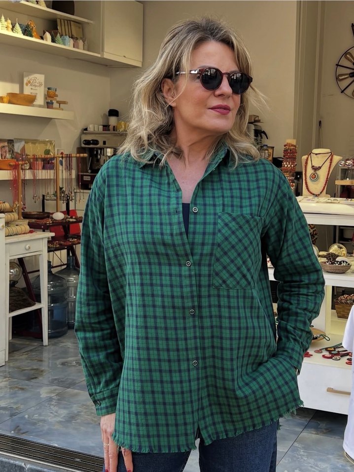 Yeşil Kareli Düğmeli Salaş Gömlek