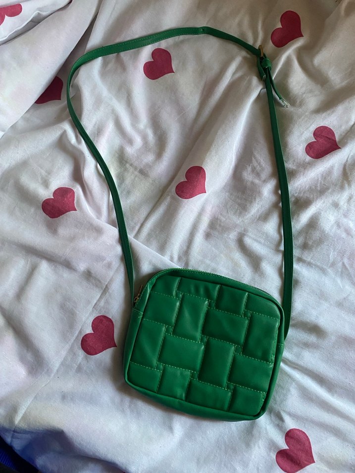 Yeşil kareli desenli, tokalı askıya sahip kadın omuz çantasıdır. Sentetik kumaştan yapılmıştır, günlük kullanıma uygundur.