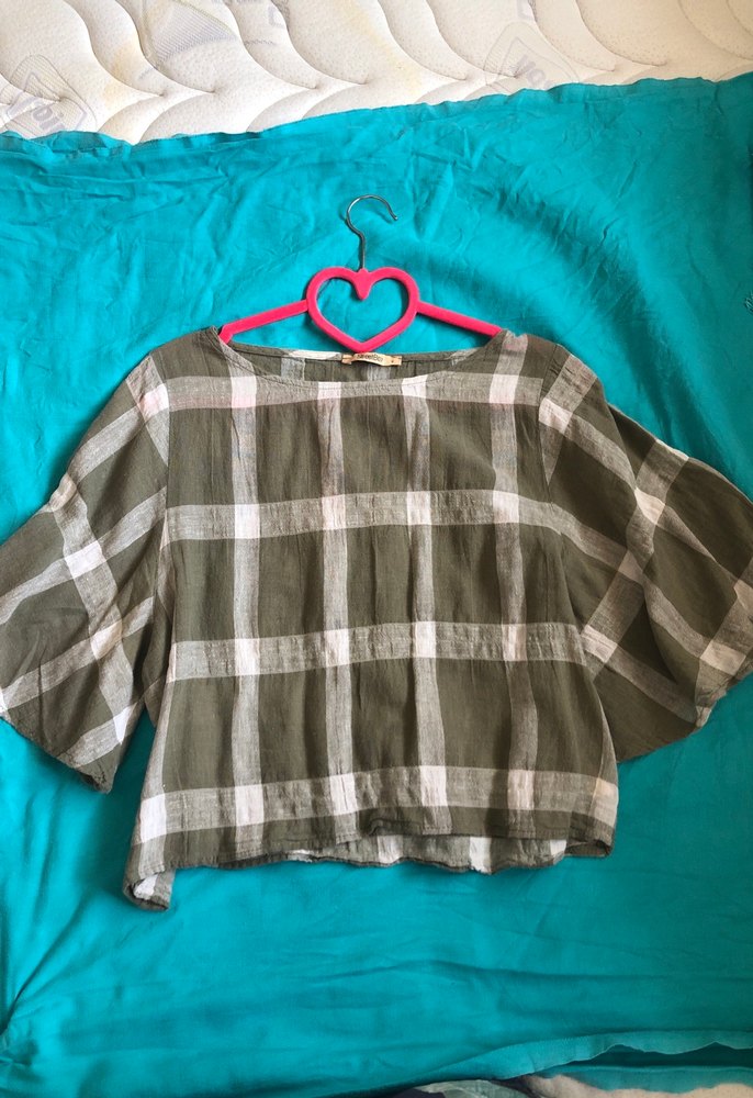 Yeşil Kareli Salaş Kadın keten Bluz streetbox marka