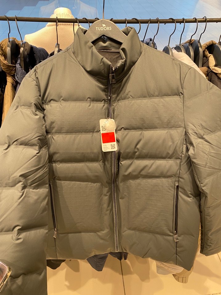 Fermuarlı, uzun kollu ve yeşil renkte, kaz tüyünden üretilmiş erkek mont.