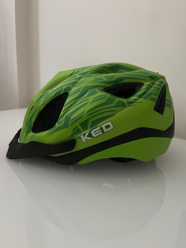 Renkli yılan desenli, KED markalı yeşil motosiklet kaskı, velcro ile kapanır, trend ve avangart tarz için uygundur .