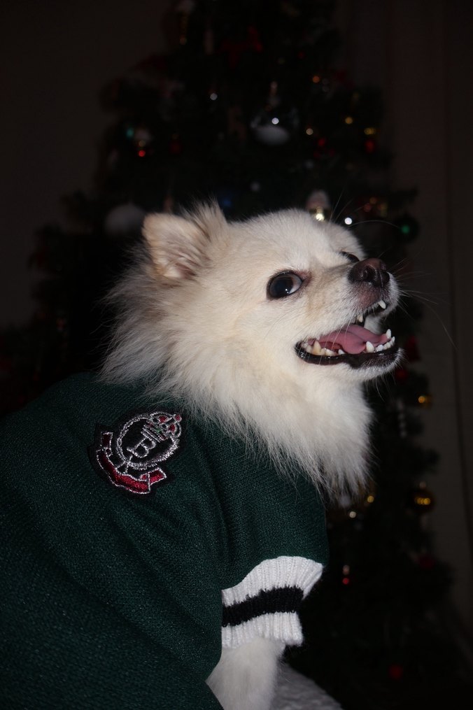 Nakışlı detaylara sahip, parlak beyaz renkli, puffed tasarımlı sokak stili köpek kıyafeti.