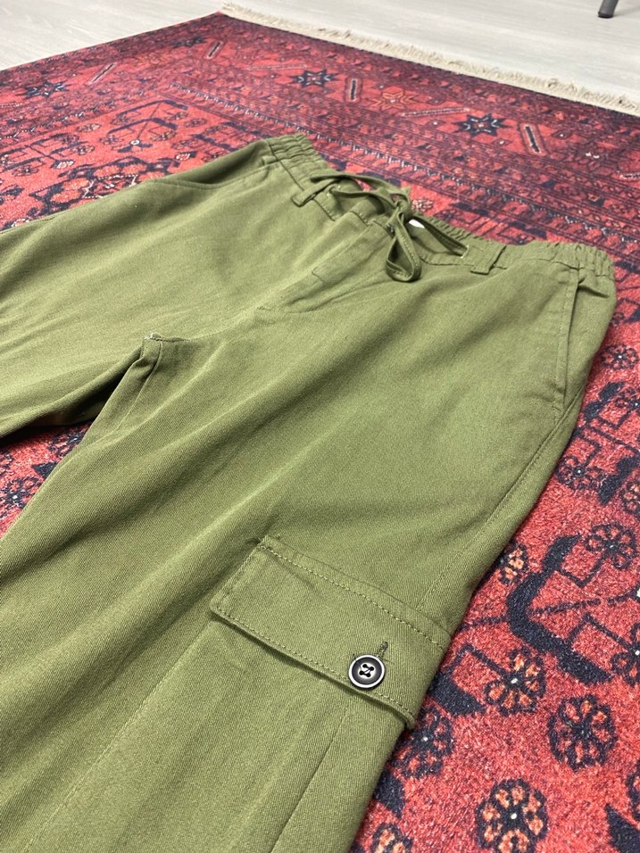 Yeşil Kemerli Bol Kesim kargo Pantolon