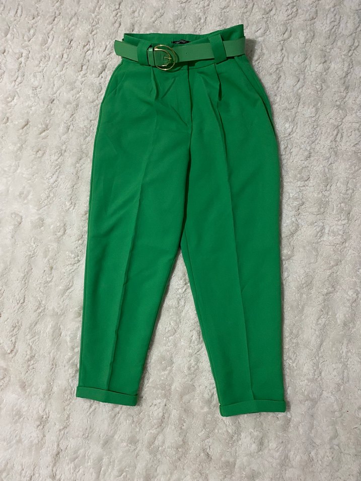Yeşil Kemerli Kadın Kumaş Pantolon