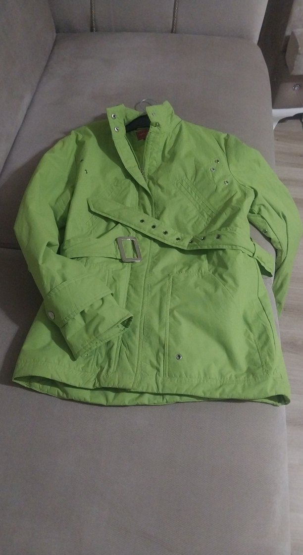 Bu yeşil kemerli kadın mont, yakalı ve belden oturan kesimiyle trend sokak stili sunar. Uzun kollu, orta boy ve yumuşak, sıcak kumaştan yapılmıştır. Dış mekan kullanımı için uygundur, parlak görünümlüdür.