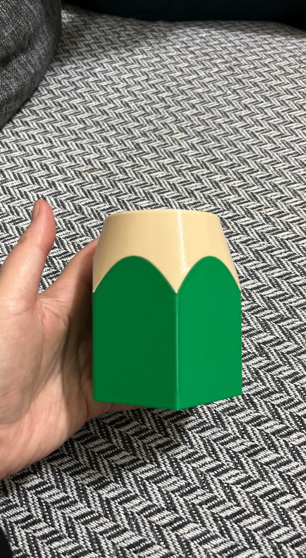 Bu masa üstü kalemlik, açık yeşil renkte ve keskin hatlı bir yarık detayıyla dikkat çekiyor.