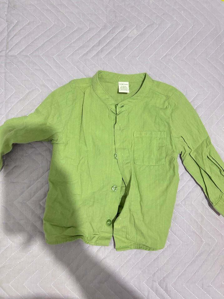 Yeşil Keten Erkek Çocuk Gömlek