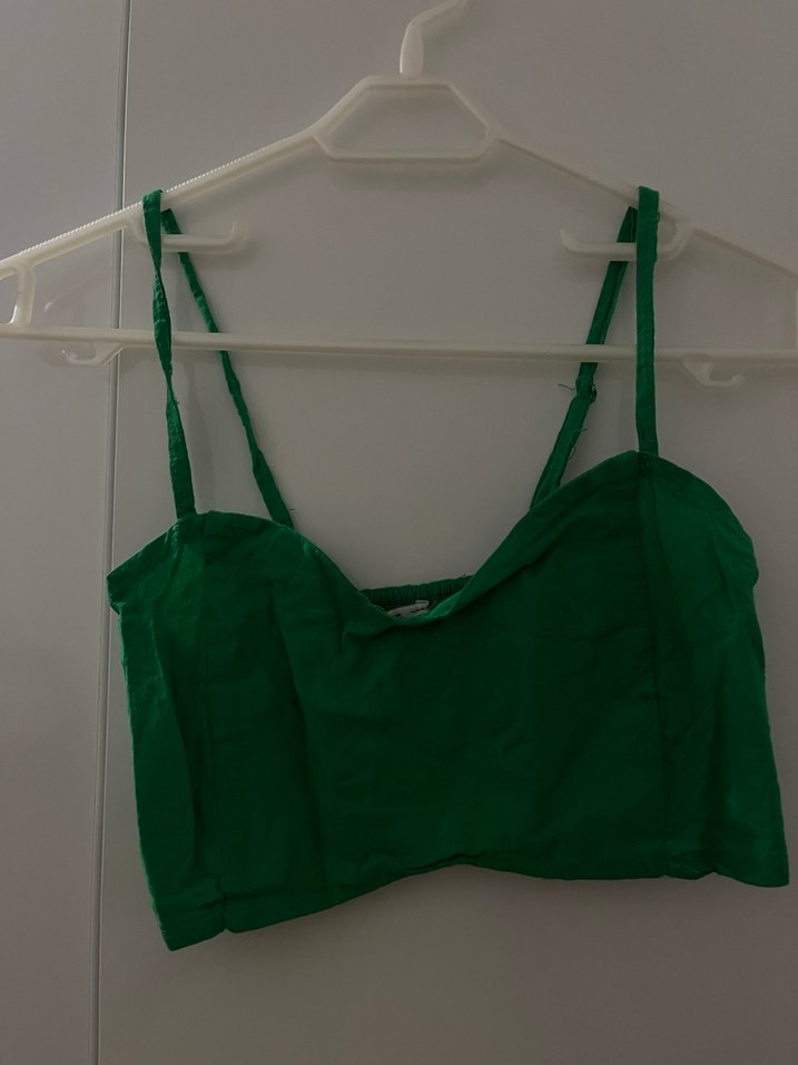 Yeşil Keten İnce Askılı Bustiyer