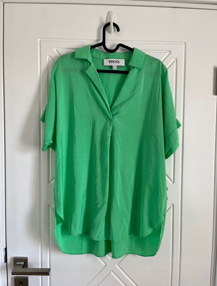 Kumaşı çok güzel. Severek 2 defa giydim. Son giyişimden sonra ütü yaparken birkaç yeri açıldı, fotograflarda belirttim. Nakış ile kapatarak kullanmak isteyen olursa alabilir.