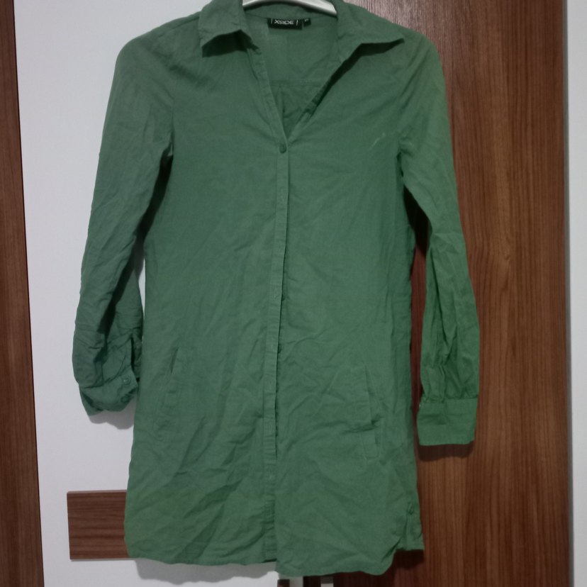 Yeşil Keten Uzun Kollu Gömlek