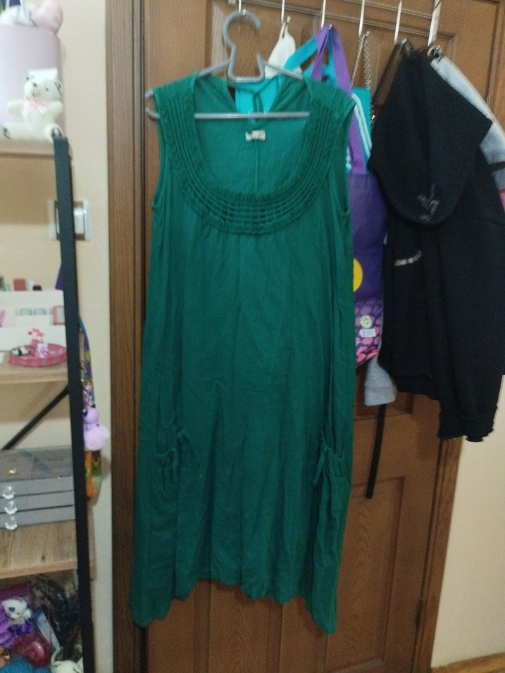 Yeşil Keten YAZLIK ELBİSE