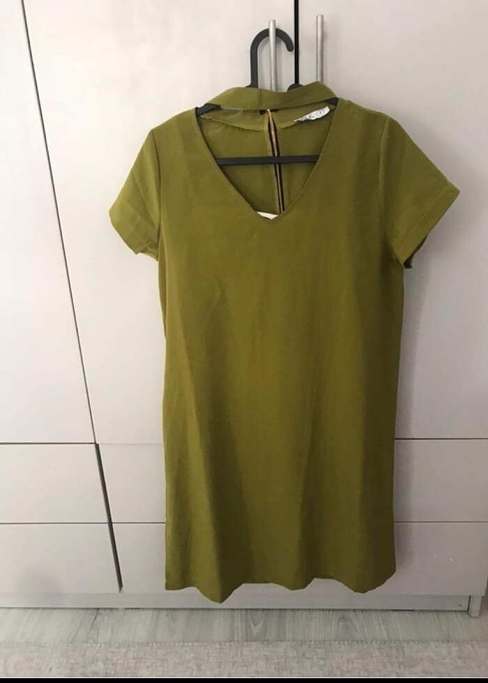 Astarı ayrıdır zeytinyaği yeşili elbise