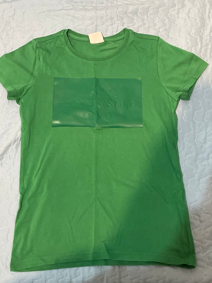 Yeşil renkli, kısa kollu ve bisiklet yaka çocuk tişörtü, parlak baskılı detaylarla günlük sokak stiline uygun şekilde tasarlanmıştır.