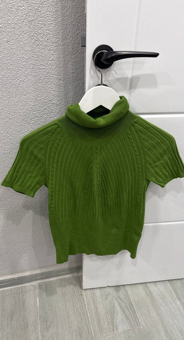 Yeşil Kısa Kollu Boğazlı Triko Kazak